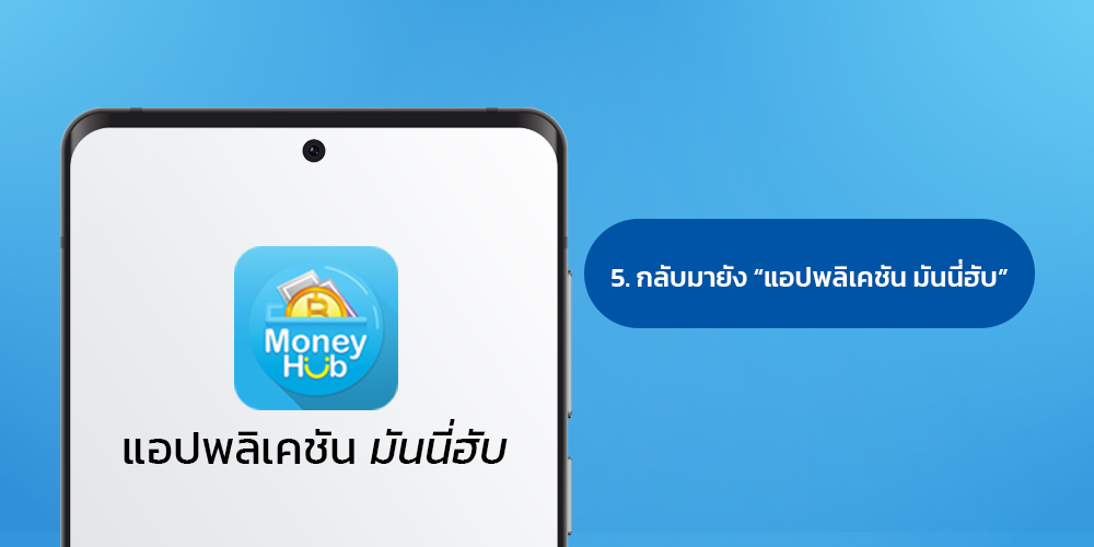 เมื่อดำเนินการเสร็จสิ้น กรุณากลับมายัง แอปพลิเคชัน มันนี่ฮับ เพื่อดำเนินการต่อ